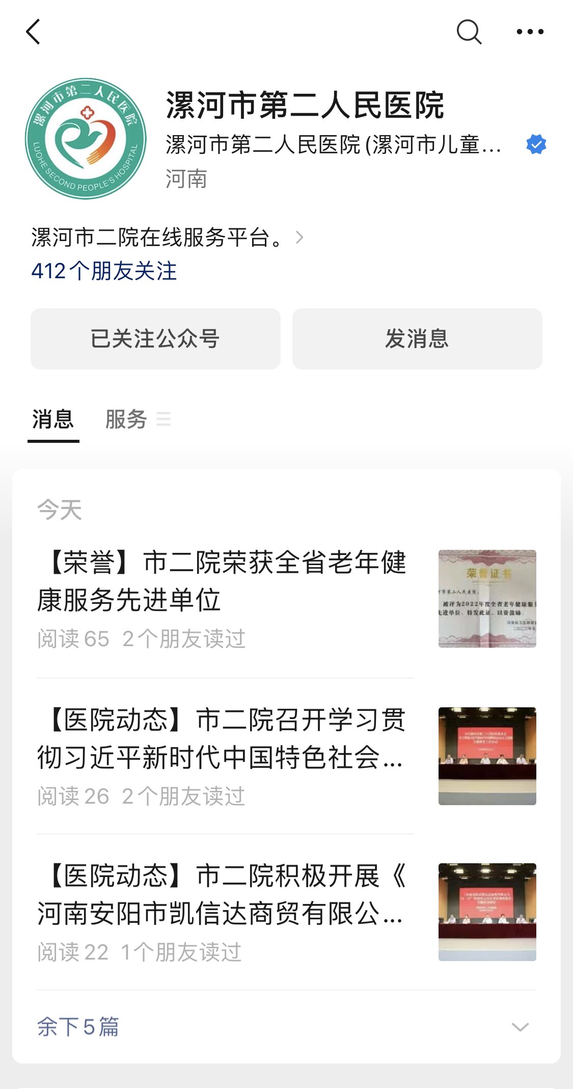 01.關(guān)注“漯河市第二人民醫(yī)院”公眾號(hào)
