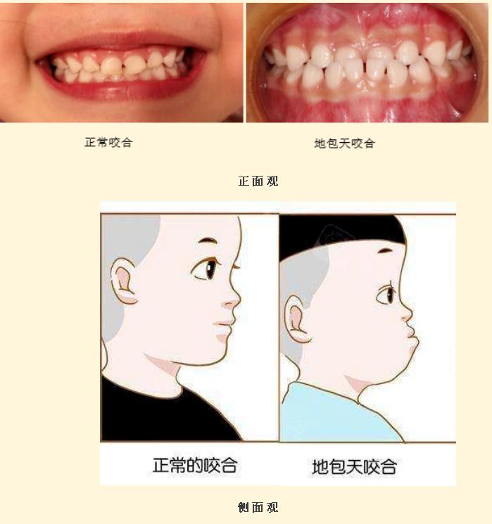 后天環(huán)境因素有:第一,兒童囗腔不良習慣,將舌頭向前頂下牙齒,長期吐舌習慣、吮指、咬嘴唇、下巴前伸、含奶嘴睡覺;第二,不恰當?shù)奈桂B(yǎng)方式,導致孩子下巴過度前伸;第三,乳牙期的局部障礙,如多數(shù)乳磨牙過早缺失,形成前牙咀嚼,下頜逐漸向前移位;第四,某些疾病亦可導致地包天,如先天性唇腭裂、垂體機能亢進、佝僂病等會導致上頜骨發(fā)育不良。