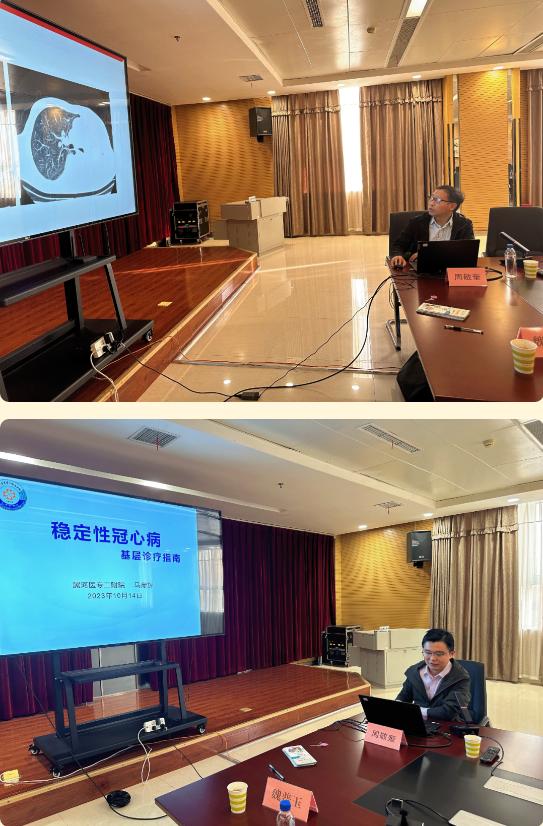 沙龍活動現(xiàn)場,主要采取學(xué)術(shù)講座與現(xiàn)場討論交流形式進行。呼吸內(nèi)科周敬奎主任,共產(chǎn)黨員、沈昊昊主治醫(yī)師,心血管內(nèi)科二病區(qū)馬彥輝副主任醫(yī)師分別就《肺栓塞的規(guī)范診治》《高血壓心臟病的規(guī)范診治》《穩(wěn)定性冠心病基層診療指南》進行精彩分享。講課結(jié)束后各位專家結(jié)合自身臨床經(jīng)驗及個人專業(yè)特點,圍繞具體病例進行學(xué)術(shù)討論,進一步提高了醫(yī)聯(lián)體基層醫(yī)務(wù)人員的理論知識,參會人員紛紛表示受益匪淺。