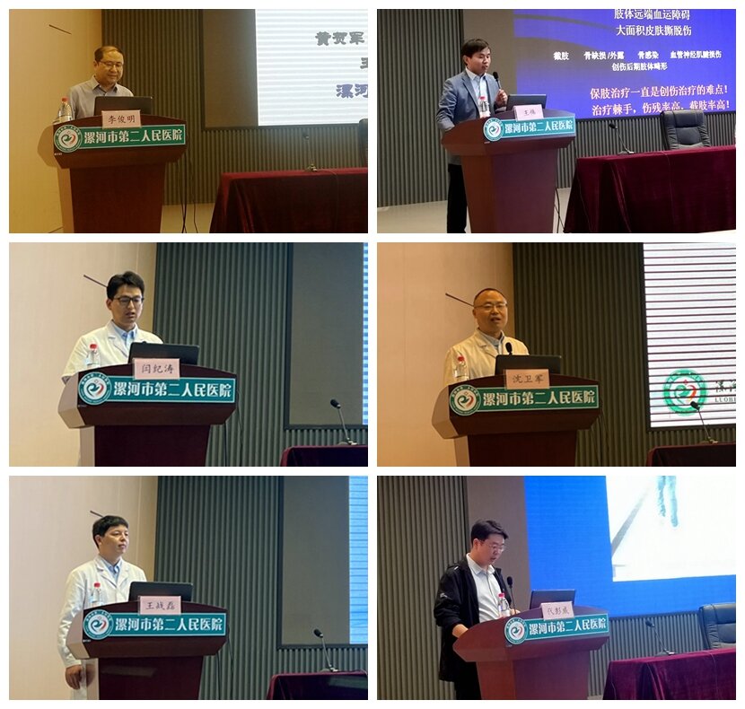在學(xué)術(shù)交流環(huán)節(jié),市二院顯微手足外科主任沈衛(wèi)軍就“損傷嚴(yán)重的離斷肢體再植還是截肢”,漯河醫(yī)專二附院顯微外科李俊明主任就“改良大多角骨切除關(guān)節(jié)成形治療3、4期拇指腕掌關(guān)節(jié)炎”,漯河醫(yī)專二附院顯微外科王偉就“基于骨整形理念聯(lián)合llizarov技術(shù)治療脛骨骨髓炎合并皮膚軟組織缺損”,漯河市第二人民醫(yī)院顯微外科王戰(zhàn)磊就“甲溝炎的診治”,漯河醫(yī)專二附院顯微外科代彭偉就“跟腱缺損并跟后區(qū)皮膚軟組織缺損的修復(fù)”,漯河市第二人民醫(yī)院顯微外科閆紀(jì)濤就“修復(fù)先天性多指的規(guī)范化診療”進行了專題講座及分享交流。