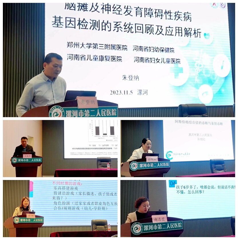 鄭州大學(xué)第三附屬醫(yī)院朱登納教授就《基因檢測的系統(tǒng)回顧及應(yīng)用解析》、市中心醫(yī)院康復(fù)醫(yī)學(xué)科主任王海濤全面闡述了《閱讀障礙的評(píng)估診斷和治療》、市二院副院長郭長根就《兒童重癥康復(fù)病人的管理》、市婦幼保健院兒童康復(fù)科主任趙志霞講授了《語言發(fā)育遲緩》、市二院兒童康復(fù)科副主任孫旭紅講授了《阿斯伯格綜合征的診斷與鑒別診斷》、市六院主管治療師王艷分享了《我們?nèi)绾闻愫⒆油嫫饋怼?。專家們圍繞相應(yīng)專題作了深入淺出的講解,從多方面、多維度為參會(huì)者帶來了一場高質(zhì)量的學(xué)術(shù)盛宴,為一線臨床醫(yī)師分享了寶貴的經(jīng)驗(yàn),使大家獲益良多。
