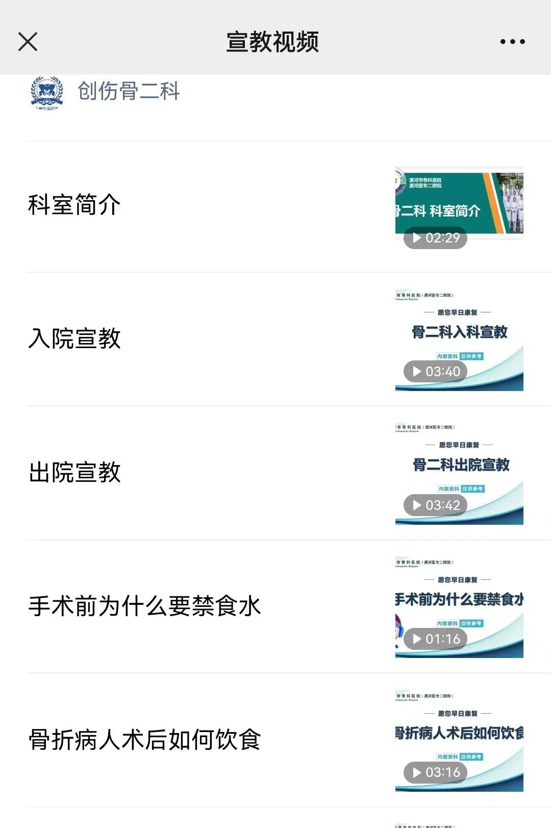 為深入貫徹落實“改善就醫(yī)感受 提升患者體驗”六聚焦六提升實施方案,提高患者從入院到出院全流程健康知識宣教效果,充分發(fā)揮新媒體短視頻在健康科普知識傳播中的獨特優(yōu)勢,漯河市骨科醫(yī)院骨二科(創(chuàng)傷骨科、骨腫瘤)率先在科室開展住院患者全流程視頻宣教服務。通過微信公眾號、電視、平板電腦、健康宣教二維碼等多種方式全方面進行宣教視頻的傳播,提升患者就醫(yī)體驗,實現(xiàn)群眾便捷就醫(yī)、安全就醫(yī)、明白就醫(yī)。