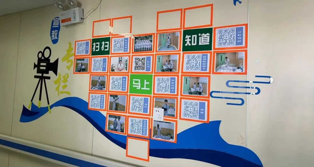 走進骨二科(創(chuàng)傷骨科、骨腫瘤),映入眼簾的就是獨具特色的健康宣教二維碼墻,這是科室優(yōu)質護理服務工作的一道靚麗的風景線,也是提升患者就醫(yī)體驗的重要舉措。從入院宣教到圍術期健康指導、術后康復鍛煉再到出院宣教……每一個場景設計、每一個動作要領都是骨二科(創(chuàng)傷骨科、骨腫瘤)醫(yī)護人員結合工作實際,本色出演,通過自學制作科普視頻,并上傳至網(wǎng)絡生成二維碼來供患者觀看。為方便患者操作,科室特意設計并制作宣傳文化墻,將二維碼放置在文化墻上,患者只要掃一掃即可找到自己需要獲取的健康知識。體現(xiàn)了健康教育實時性、??菩?、個性化的特點,患者不僅從中學習健康知識,更提高遵醫(yī)行為的意識,提升了治療的依從性和滿意度。