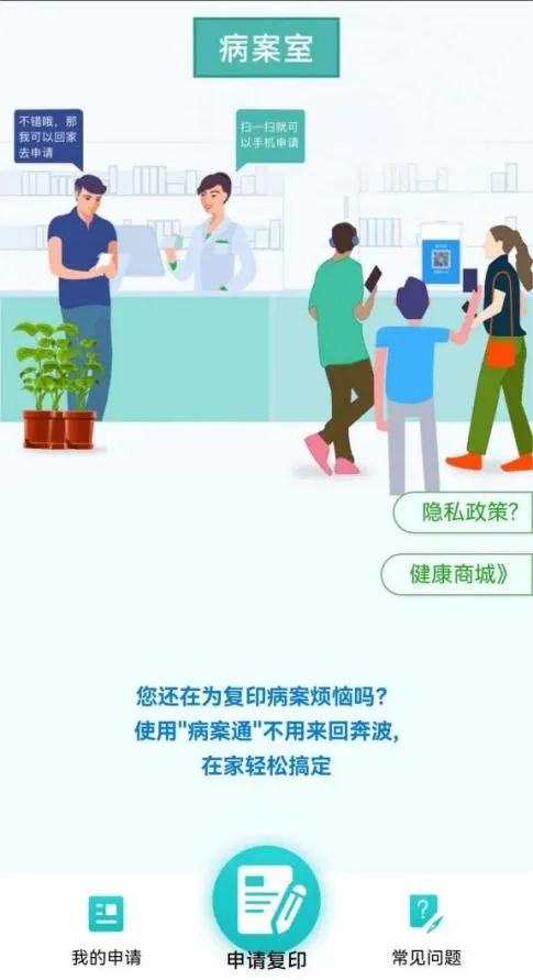 患者在院期間,如需辦理復(fù)印病歷,可掃碼關(guān)注“病案通”,選擇漯河醫(yī)專二附院,點(diǎn)擊“申請(qǐng)復(fù)印”并填寫(xiě)相關(guān)信息,待病歷歸檔后將按照記載信息給予郵寄。