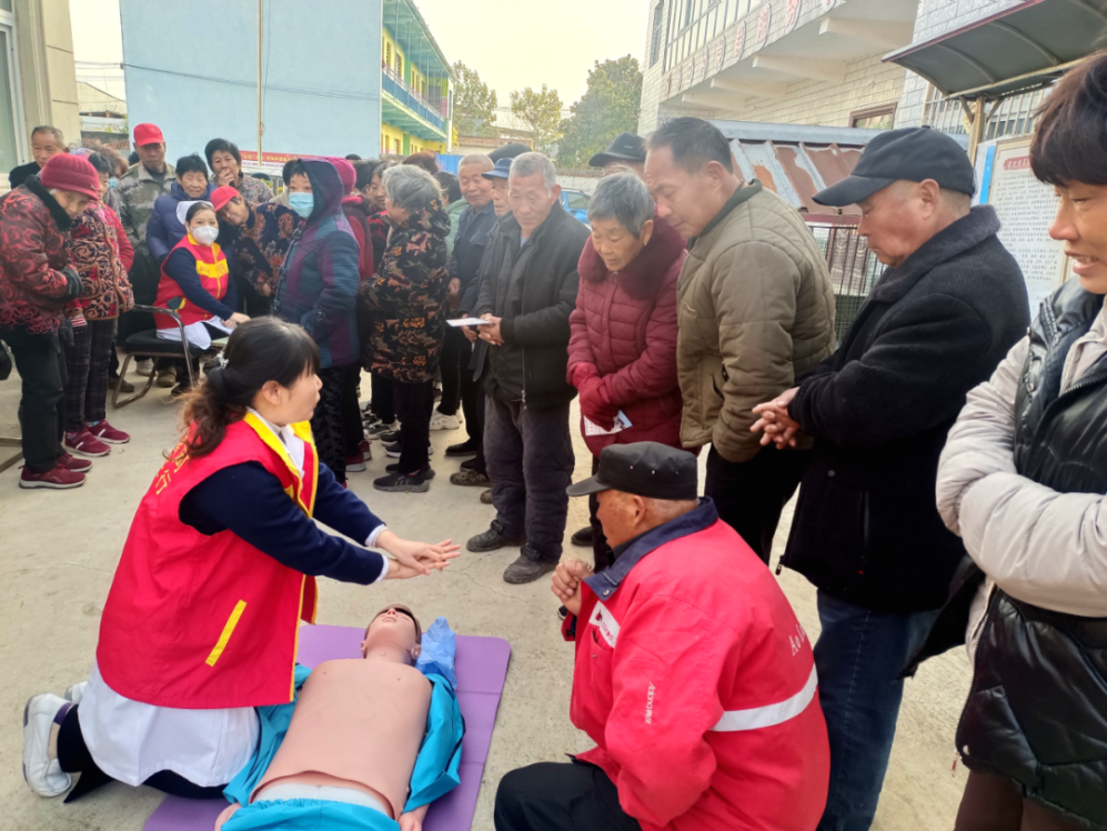當(dāng)天早上七時(shí)十分,來(lái)自該院內(nèi)科、外科、骨科、急診科、兒科、社工部等專業(yè)的醫(yī)療專家、黨員志愿者們出發(fā)來(lái)到召陵區(qū)鄧襄鎮(zhèn)尚莊村開啟大型義診活動(dòng)。義診現(xiàn)場(chǎng),共產(chǎn)黨員、肛腸科主任賈彥超,兒科主任醫(yī)師孟平英,共產(chǎn)黨員、普外科副主任醫(yī)師劉永輝,胸外科副主任醫(yī)師許海偉,心內(nèi)科主治醫(yī)師劉曉丹,骨科醫(yī)師泮學(xué)貞等專家志愿者為村民免費(fèi)測(cè)血壓、手指血糖、做心電圖、骨密度檢測(cè)、甲狀腺彩超、碳呼吸試驗(yàn)、體格檢查、疾病診斷,并為村民進(jìn)行用藥指導(dǎo)、健康咨詢,發(fā)放健康教育手冊(cè)等。此外,共產(chǎn)黨員、社工部主任韓書環(huán)現(xiàn)場(chǎng)通過(guò)人體模型向村民講解心肺復(fù)蘇的操作手法,并邀請(qǐng)觀摩的村民現(xiàn)場(chǎng)操作演練,指出心肺復(fù)蘇操作過(guò)程中需要注意的問(wèn)題。