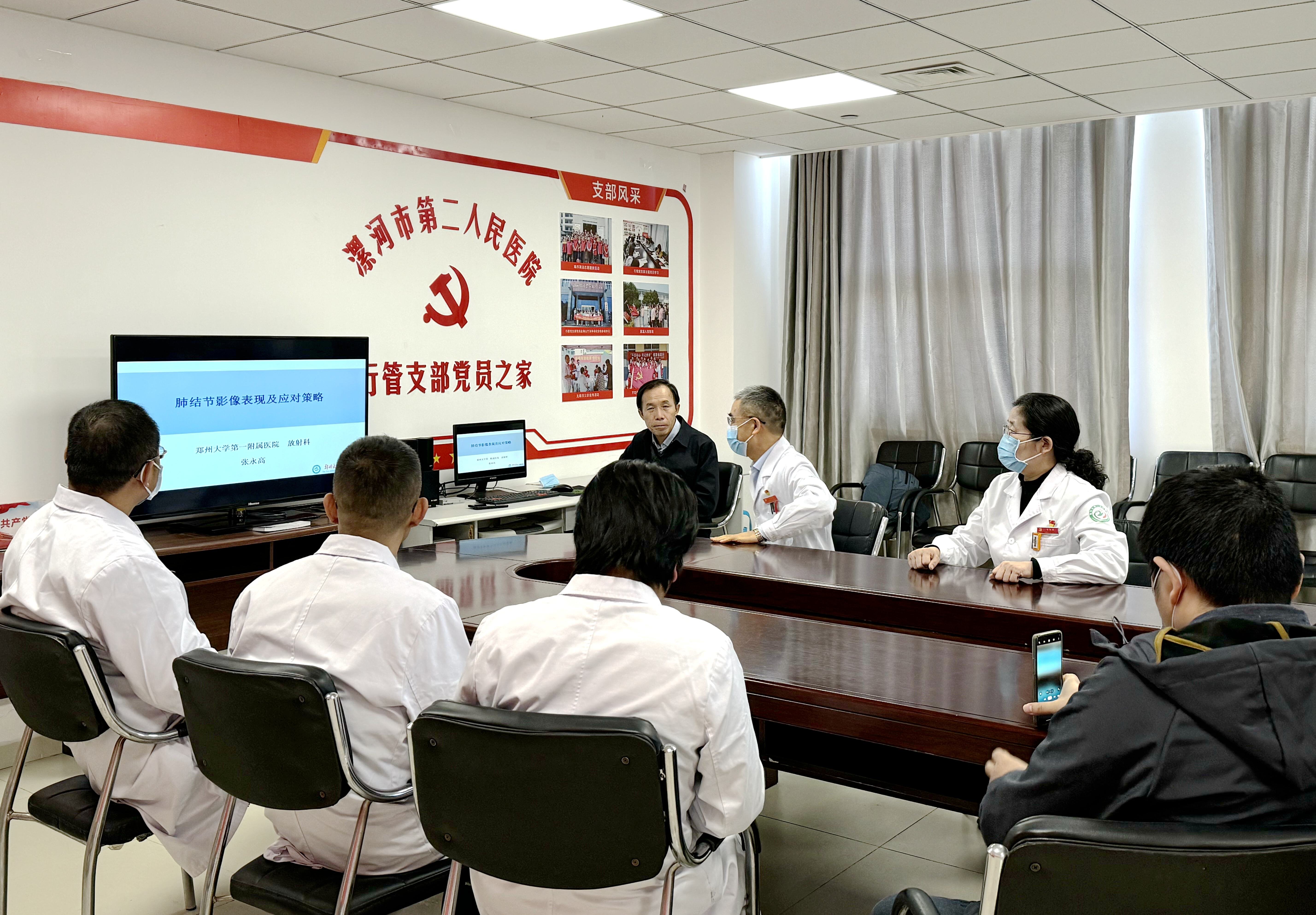 為了能給肺結節(jié)患者進行全面評估,準確判斷結節(jié)的性質(zhì),提供精準的診療方案。近日,鄭州大學一附院放射科副主任、主任醫(yī)師張永高教授蒞臨市二院肺結節(jié)門診,進行影像學會診、講座等,院長王瑾帶領肺結節(jié)團隊陪同。