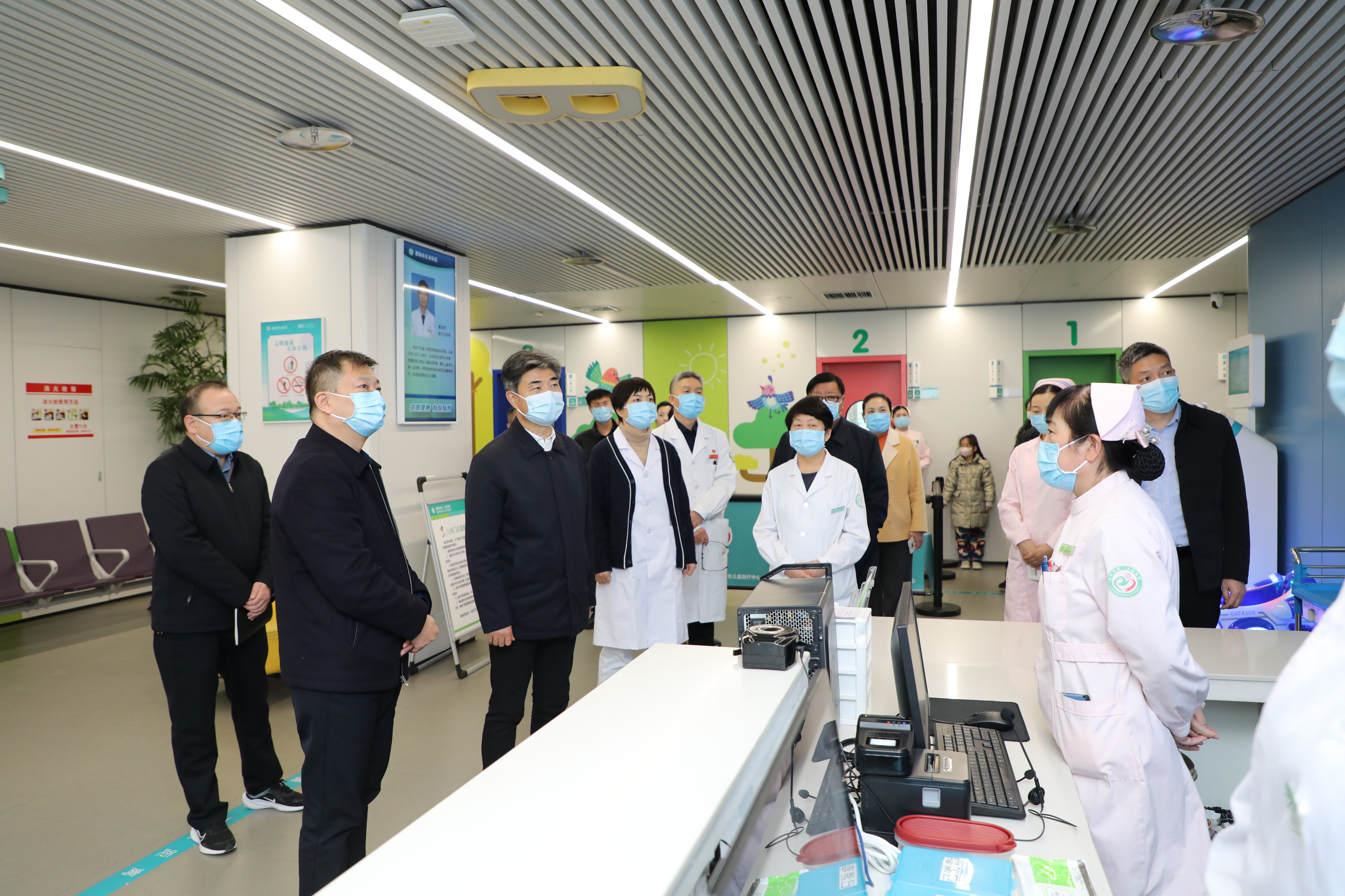 11月29日,市衛(wèi)健委黨組書記、主任宋耀生一行來到市二院實地調(diào)研、指導(dǎo)兒童呼吸道疾病防控工作,深入了解患者救治情況,走訪慰問一線醫(yī)務(wù)人員,對全體醫(yī)務(wù)人員的辛勤付出和敬業(yè)精神表示慰問。院黨委書記魏松、院長王瑾、班子成員及相關(guān)科室人員陪同。