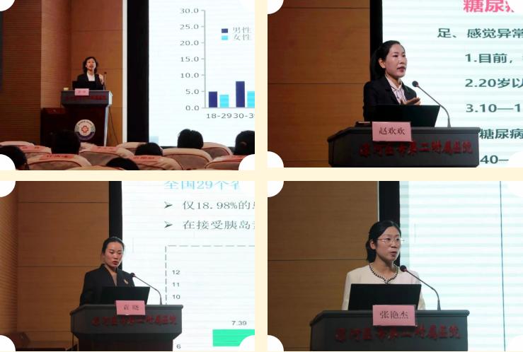 河南省護理學會糖尿病護理專業(yè)委員會主任委員袁舉進行授課,袁主委通過典型病例對糖尿病慢性并發(fā)癥發(fā)病的危險因素、治療及護理進行了分享,希望通過這次的學習在工作中加強糖尿病患者的綜合管理,積極采取干預措施,減少糖尿病患者并發(fā)癥的發(fā)生。