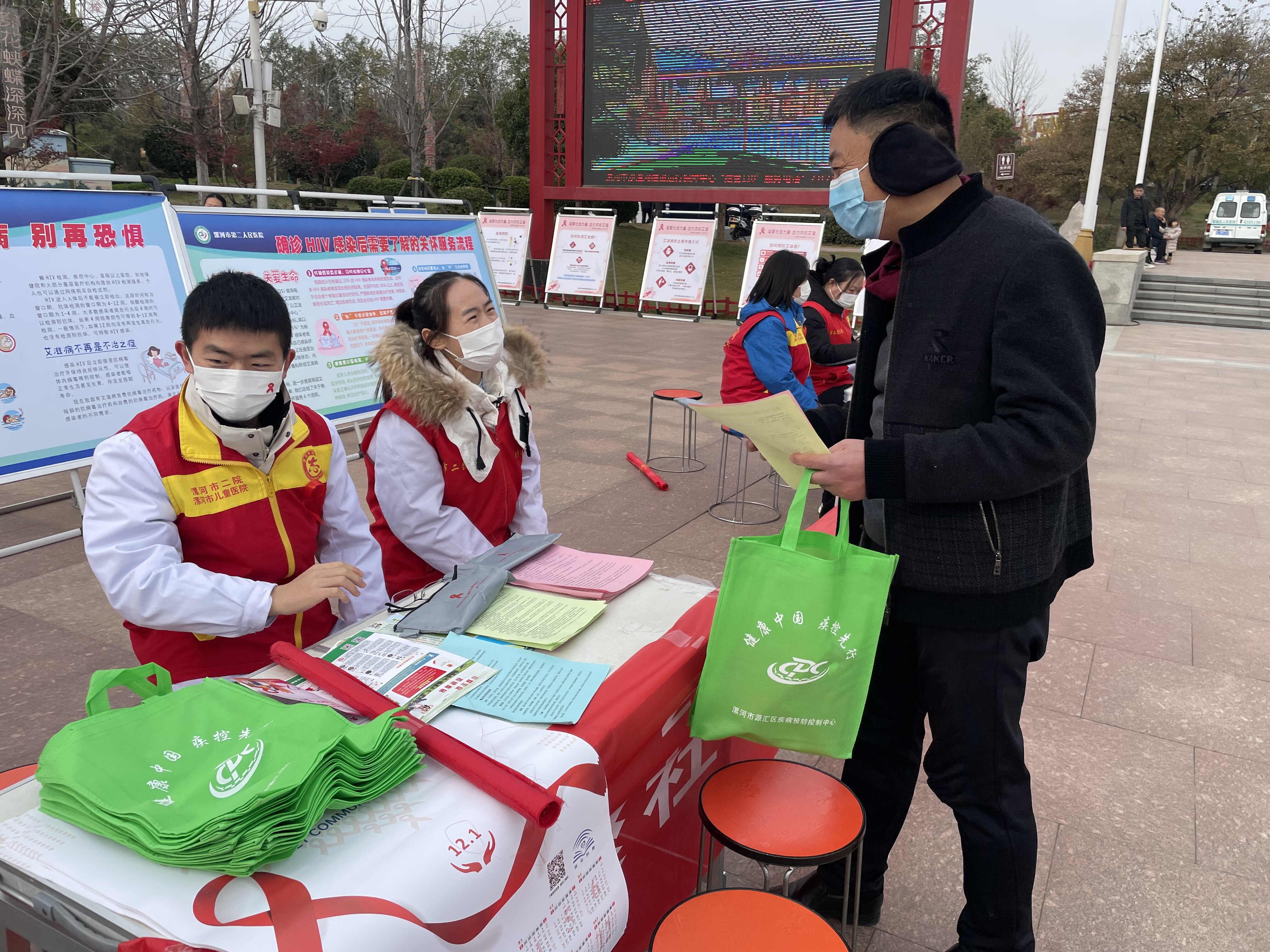 在第36個世界艾滋病日來臨之際,為了營造全民參與治艾防艾的宣傳氛圍,提高群眾對艾滋病的認識,市二院積極響應市衛(wèi)健委統(tǒng)一部署安排,于11月30日上午,組織疾控科、皮膚科、中醫(yī)針灸科、內鏡室等相關科室專家、志愿者到紅楓廣場進行“凝聚社會力量 合力共抗艾滋”主題宣傳活動。
