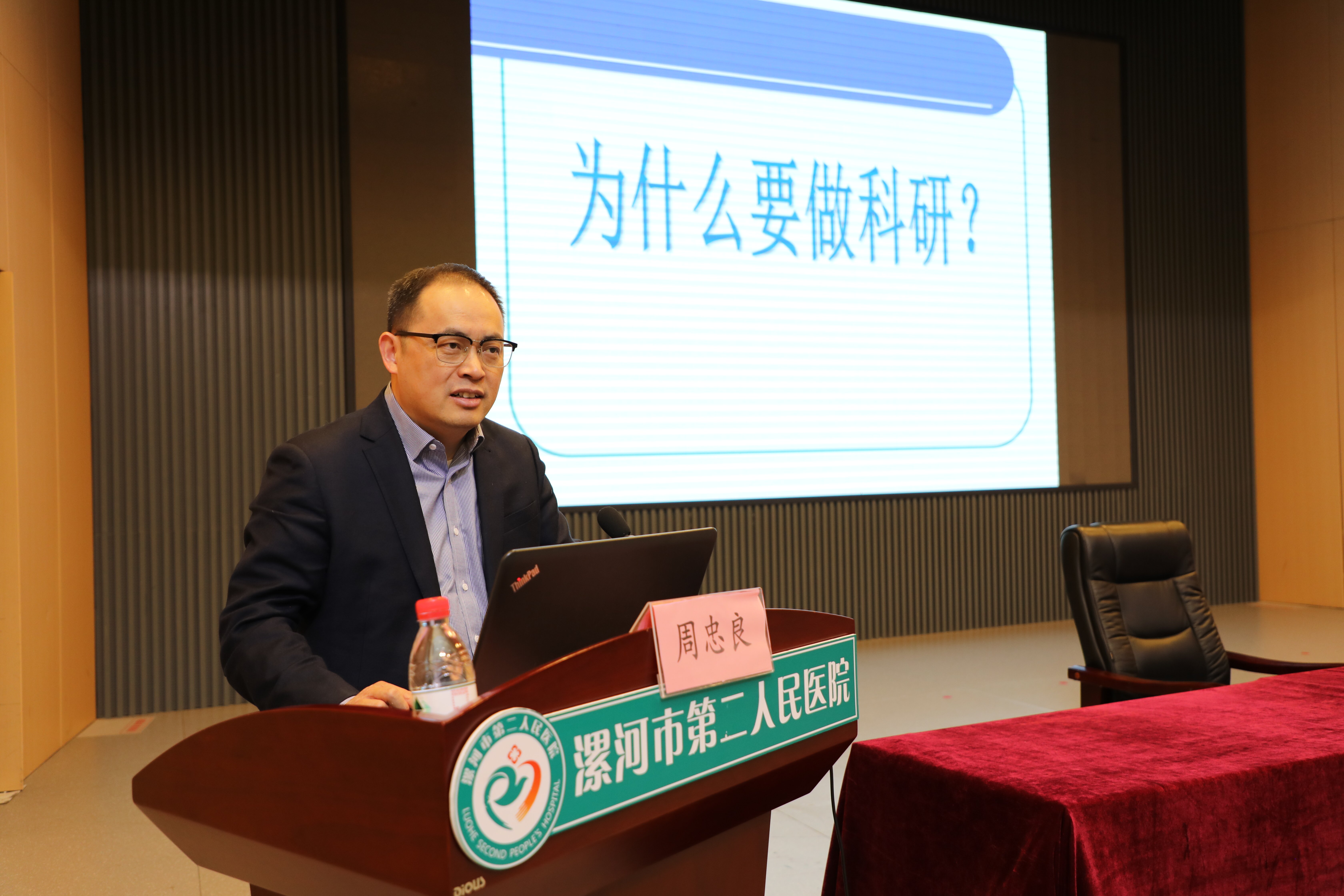 黨委書記魏松對(duì)周忠良教授的到來表示熱烈的歡迎。他強(qiáng)調(diào),醫(yī)學(xué)科研是現(xiàn)代醫(yī)院發(fā)展的重要支撐,也是提高醫(yī)療水平和質(zhì)量的關(guān)鍵所在。希望廣大職工能以此次科研提升講座為契機(jī),抓住機(jī)會(huì)努力向周教授學(xué)習(xí),發(fā)散提升科研思維,積極探索解決科研問題的途徑和方法,進(jìn)一步提高科研工作的質(zhì)量和水平。