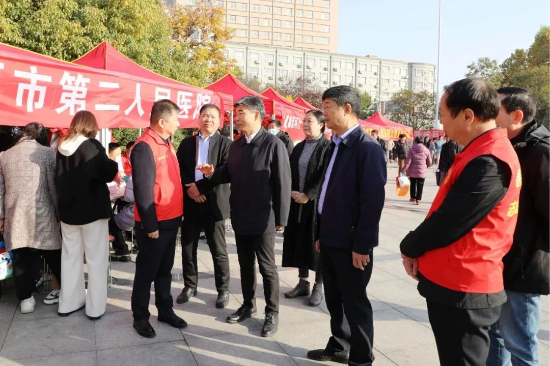 為深入貫徹落實黨的二十大精神,助力鄉(xiāng)村振興和文明漯河、健康漯河建設(shè),11月28日上午,“健康漯河行·大醫(yī)獻(xiàn)愛心”鄉(xiāng)村振興志愿服務(wù)專項行動暨“健康漯河”行動啟動儀式在郾城區(qū)黃河廣場舉行。市衛(wèi)健委黨組書記、主任宋耀生蒞臨市二院義診活動現(xiàn)場,在市二院黨委書記魏松、紀(jì)委書記孟德陽陪同下,親切慰問義診專家,并提出工作希望與要求。