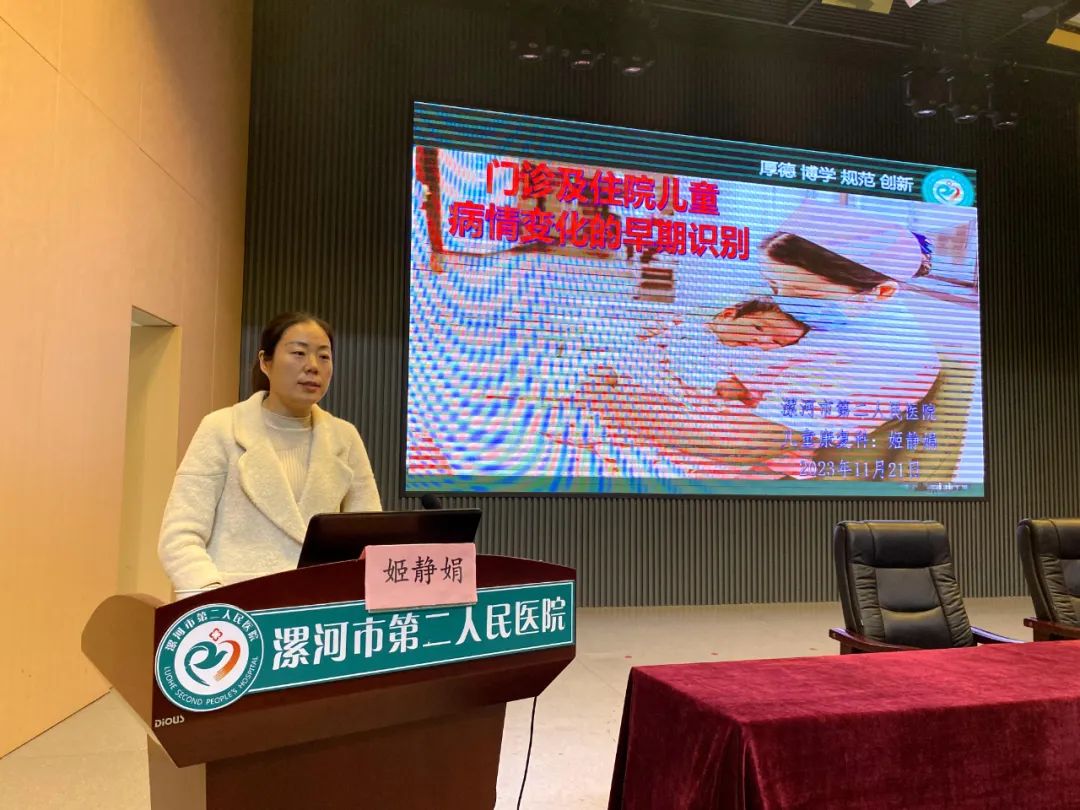 市二院兒童康復(fù)科護士長姬靜娟通過《門診及住院兒童病情變化的早期識別》,講述了兒童疾病早期識別與干預(yù)的重要性及兒童疾病管理與救治方面的相關(guān)知識。