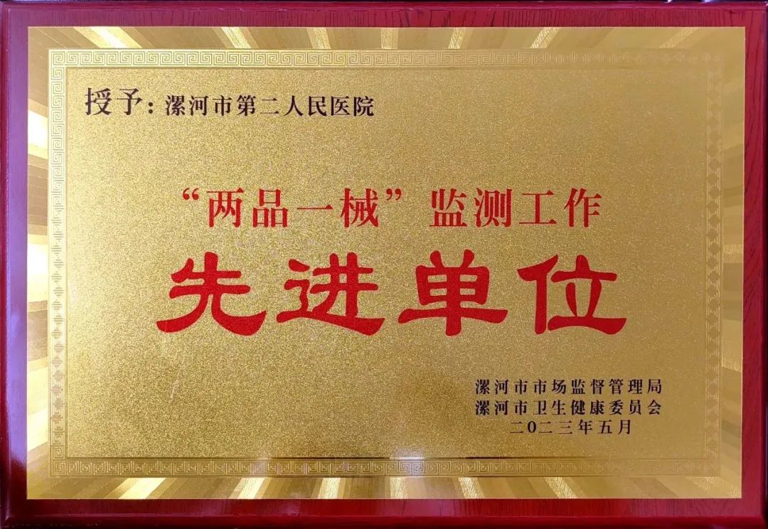 5月25日,市二院分別榮獲河南省2022年度“兩品一械”監(jiān)測工作先進(jìn)單位、漯河市2022年度“兩品一械”監(jiān)測工作先進(jìn)單位。