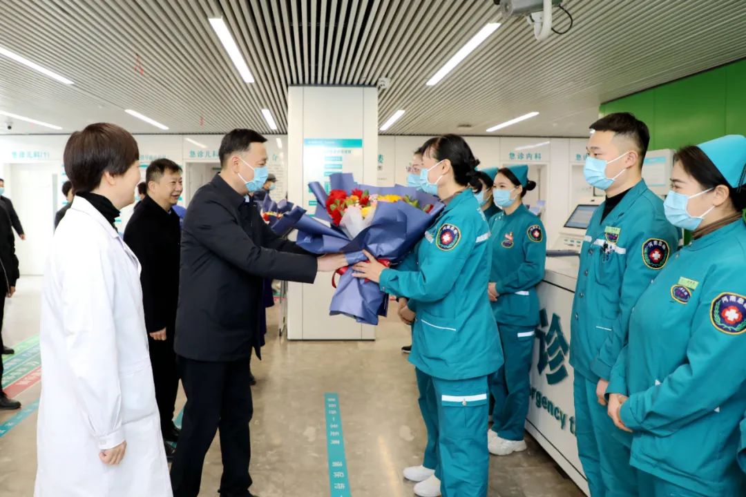 2月8日上午,新春佳節(jié)來(lái)臨之際,市衛(wèi)健委黨組成員、市紀(jì)委監(jiān)委派駐第二十一紀(jì)檢監(jiān)察組組長(zhǎng)朱黎明一行到市二院看望慰問(wèn)一線醫(yī)護(hù)人員,并送上節(jié)日的問(wèn)候。黨委書(shū)記魏松、院長(zhǎng)王瑾攜領(lǐng)導(dǎo)班子及相關(guān)職能部門(mén)負(fù)責(zé)人陪同慰問(wèn)。