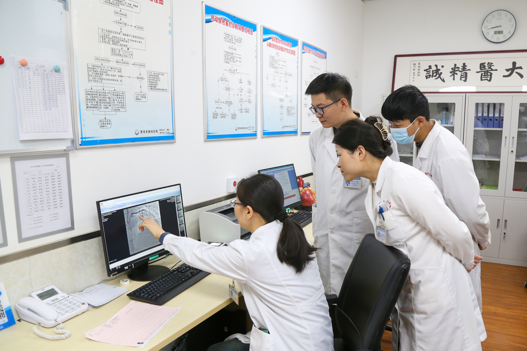 大年初五晚上,心血管內(nèi)科二病區(qū)堅(jiān)守崗位的郭晨陽醫(yī)生共收治了7名患者,期間,他配合董艷彩主任,分別為一名31歲和一名38歲的年輕男性患者進(jìn)行了急診手術(shù),他們的共同特點(diǎn)都是長期大量吸煙、熬夜。“消毒、穿刺、鞘管植入、導(dǎo)管到位……”10分鐘后,血管開通!這些生死競(jìng)速的場(chǎng)景,在心內(nèi)科幾乎每一天都在上演。春節(jié)長假,當(dāng)別人都在走親訪友歡度佳節(jié)時(shí),心內(nèi)科的醫(yī)護(hù)人員卻穿著近10公斤重的鉛衣,站到手術(shù)臺(tái)前,與死神競(jìng)速挽救患者生命。而他們所做的一切,只為讓急性心肌梗死的患者獲得新生,讓患者家庭獲得幸福感。