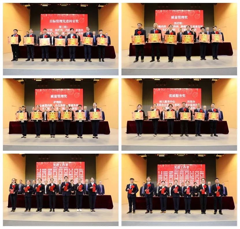 本次工作會(huì)是醫(yī)院開啟2024年高質(zhì)量發(fā)展新篇章、奮進(jìn)三甲創(chuàng)建新征程關(guān)鍵節(jié)點(diǎn)上召開的鼓干勁、聚合力的重要會(huì)議。副院長謝彩玲、副院長郭長根、紀(jì)委書記孟德陽、副院長張曉東、工會(huì)主席李世學(xué)按照大會(huì)既定議程,依次宣讀了2023年度先進(jìn)集體、先進(jìn)工作者等表彰文件和表彰名單,對2023年度特殊貢獻(xiàn)獎(jiǎng)、目標(biāo)管理先進(jìn)科室、質(zhì)量管理獎(jiǎng)、優(yōu)質(zhì)服務(wù)獎(jiǎng)、先進(jìn)工作者進(jìn)行了表彰。被表彰科室代表和先進(jìn)個(gè)人代表披紅戴花,精神抖擻,從院領(lǐng)導(dǎo)手中接過象征榮譽(yù)和期望的獎(jiǎng)牌、獎(jiǎng)狀,熱烈的掌聲響徹學(xué)術(shù)報(bào)告廳,展現(xiàn)了二院人奮勇拼搏、干必出彩的良好精神風(fēng)貌,為新的一年工作擂響了戰(zhàn)鼓,鼓足了干勁。