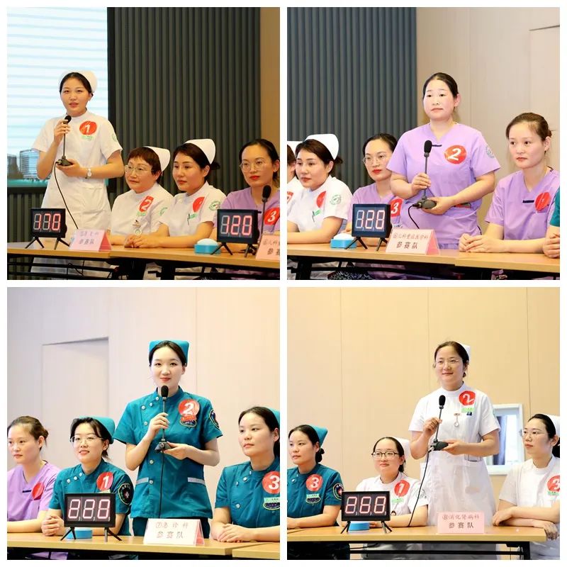 此次競賽內(nèi)容涵蓋基礎(chǔ)護理、專科護理、護理團體標準、核心制度、應(yīng)急預(yù)案等專業(yè)知識,分為初賽和決賽。此次活動,共有25個護理單元75名選手參加,經(jīng)過前期的層層選拔,8支代表隊24名選手參加了決賽。比賽現(xiàn)場氣氛火熱,高潮迭起,必答題環(huán)節(jié)各隊選手平分秋色,比分不相上下,隨著搶答環(huán)節(jié)的到來,比賽進入白熱化狀態(tài),各隊選手快速思考,競相搶答,上演了一場精彩紛呈的腦力與速度的較量;在風(fēng)險題環(huán)節(jié),各隊選手不甘落后,幾乎是在題目出現(xiàn)的瞬間就已經(jīng)有人按下了搶答器并給出準確的答案,體現(xiàn)他們扎實的理論知識和深厚的實踐功底。