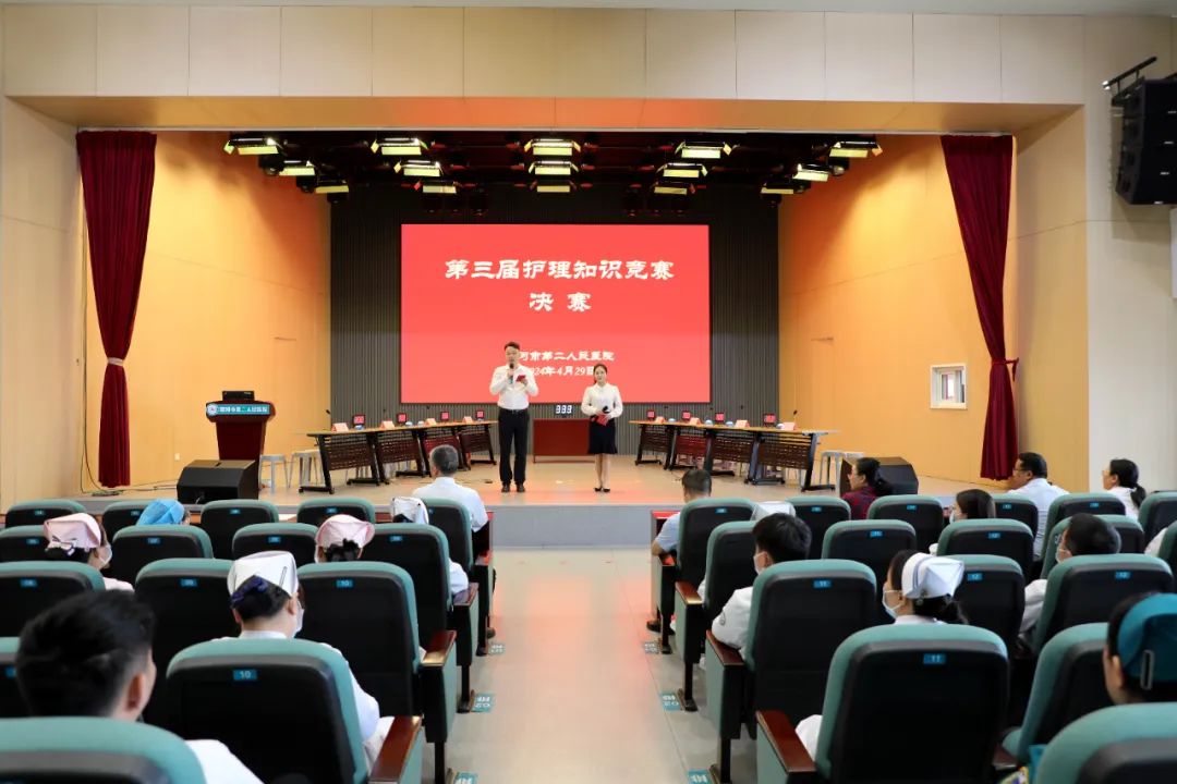 為進一步提高護理隊伍的專業(yè)能力和業(yè)務(wù)素質(zhì),營造“比學(xué)趕超”的濃厚氛圍。4月2 8日下午,在5.12國際護士節(jié)來臨之際,市二院在十二樓學(xué)術(shù)報告廳舉行第三屆護理知識競賽決賽。黨委書記魏松及領(lǐng)導(dǎo)班子成員、部分職能科長和臨床科室護理人員代表100余人參加此次競賽活動。