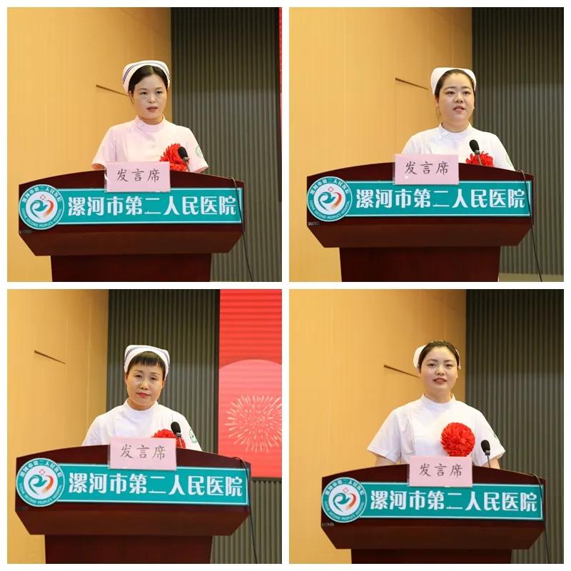 受表彰的市級優(yōu)秀護理團隊代表小兒呼吸內科胡媛媛、市級優(yōu)秀護士代表小兒外科張小玉、院級優(yōu)秀護理團隊代表心血管內科伊獻麗、院級優(yōu)秀護士代表神經外科何孟麗分別做了典型發(fā)言。