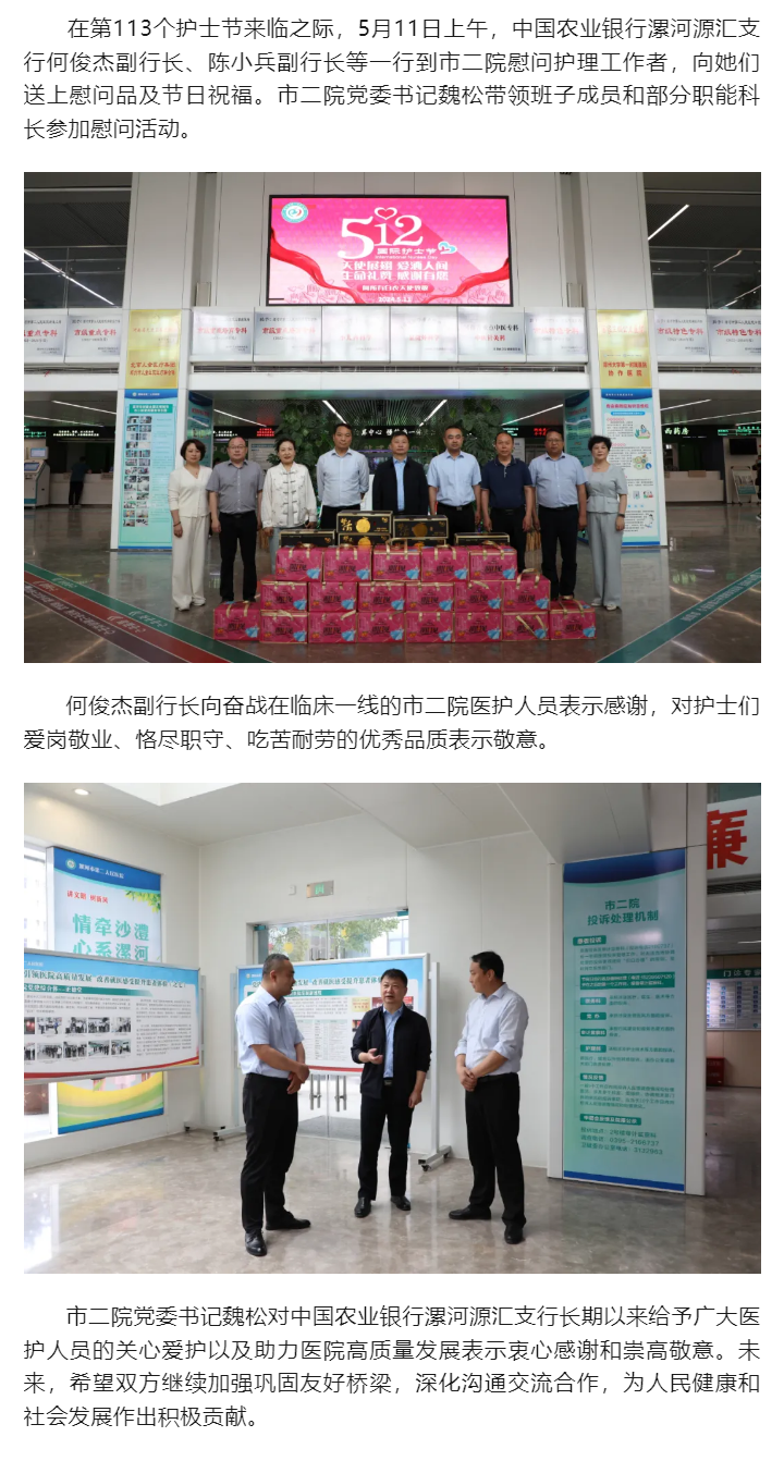 中國農(nóng)業(yè)銀行領(lǐng)導(dǎo)蒞臨市二院慰問護(hù)理工作者
