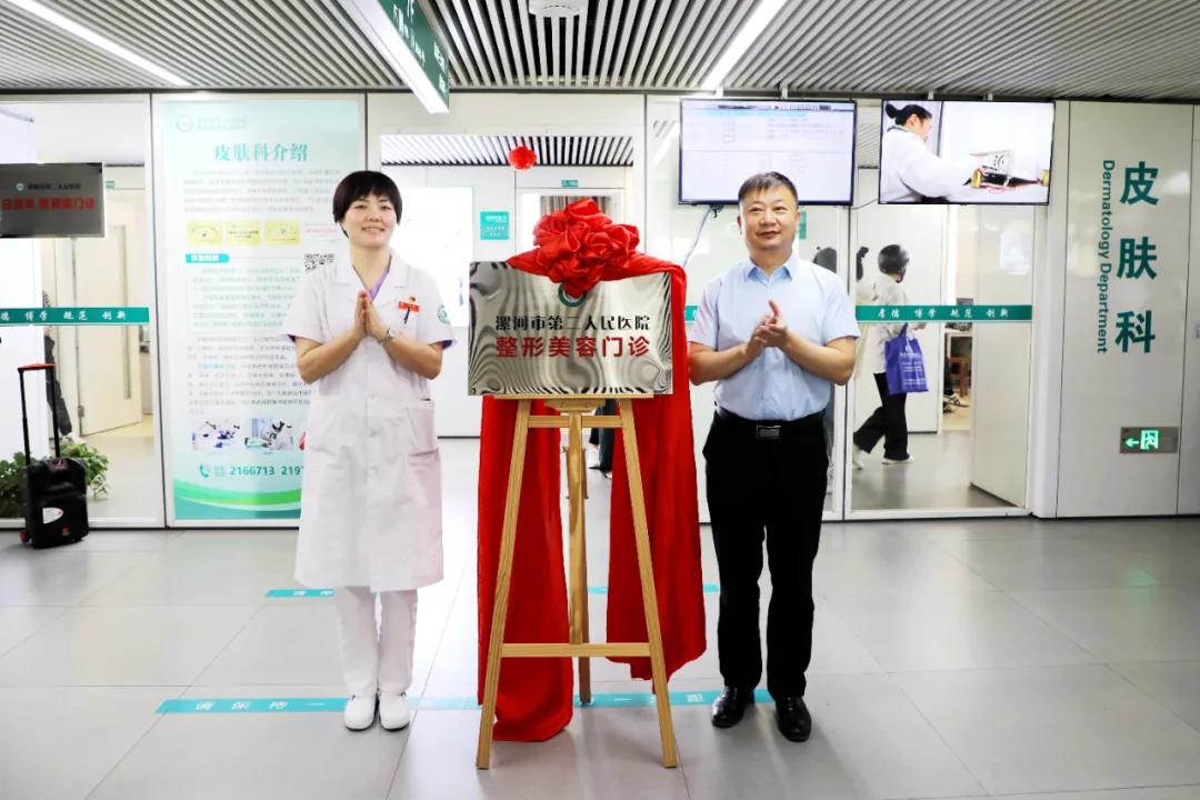 儀式現(xiàn)場(chǎng),黨委書(shū)記魏松與院長(zhǎng)王瑾共同為“漯河市第二人民醫(yī)院整形美容門診”揭牌。