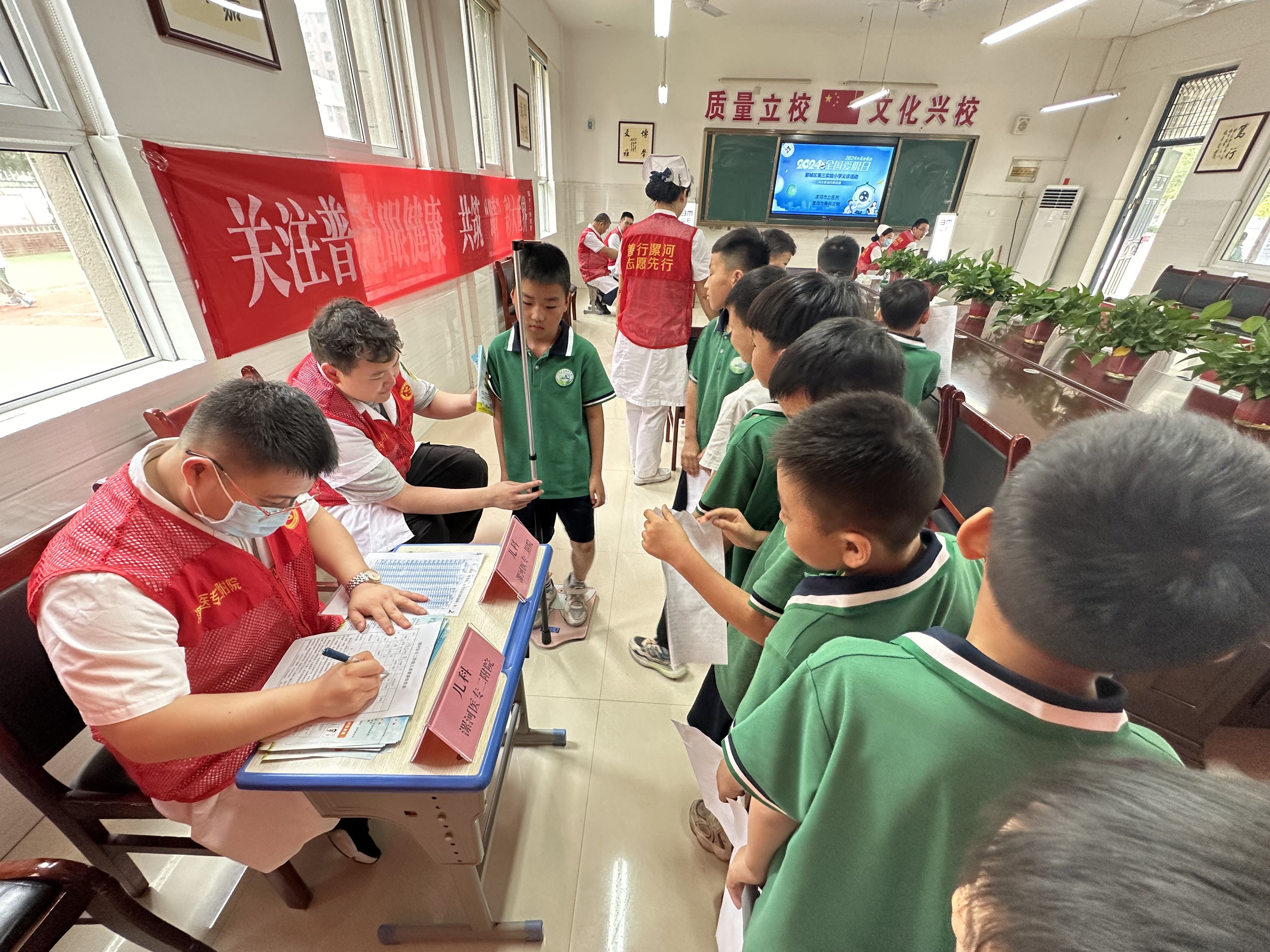 活動(dòng)現(xiàn)場(chǎng),學(xué)生們按照班級(jí)順序,有序進(jìn)入義診區(qū)域,醫(yī)療專(zhuān)家為學(xué)生們進(jìn)行身高、體重、視力等體格檢查、發(fā)放健康宣傳資料等;義診現(xiàn)場(chǎng),溫馨而富有童趣,營(yíng)造出輕松的愛(ài)心氛圍,醫(yī)護(hù)人員認(rèn)真、細(xì)致地為孩子們進(jìn)行檢查,受到師生們的如潮好評(píng)。