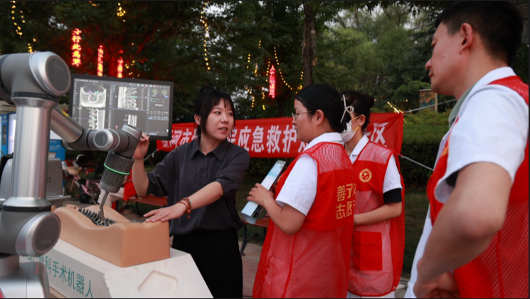 除了提供義診服務(wù)外,醫(yī)療專家志愿者們還進(jìn)行了“天璣Ⅱ”骨科機(jī)器人展示,向市民介紹了該機(jī)器人在數(shù)字智能醫(yī)療領(lǐng)域的應(yīng)用、技術(shù)特點(diǎn)、臨床優(yōu)勢以及實(shí)際案例等方面內(nèi)容,將優(yōu)質(zhì)的醫(yī)療資源和先進(jìn)的醫(yī)療技術(shù)帶到基層老百姓身邊。