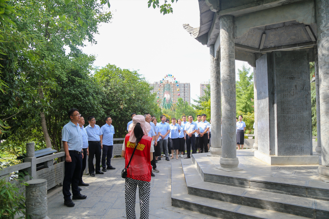 在受降亭,黨員干部們瞻仰了受降亭紀念碑,了解了漯河受降亭建立紀念碑的過程及重大意義。