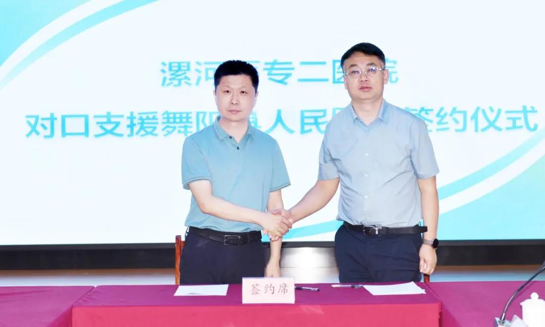 6月25日,漯河市骨科醫(yī)院對口支援舞陽縣人民醫(yī)院協(xié)議書簽訂儀式在舞陽縣人民醫(yī)院會議室舉行。漯河市骨科醫(yī)院黨委書記柴運洪、漯河市骨科醫(yī)院副院長鄭建新、舞陽縣衛(wèi)健委副主任朱迎民、舞陽縣衛(wèi)健委醫(yī)政股股長遠彩月,舞陽縣人民醫(yī)院黨委書記、院長趙樂,全體對口支援醫(yī)師及受援科室主任出席儀式。