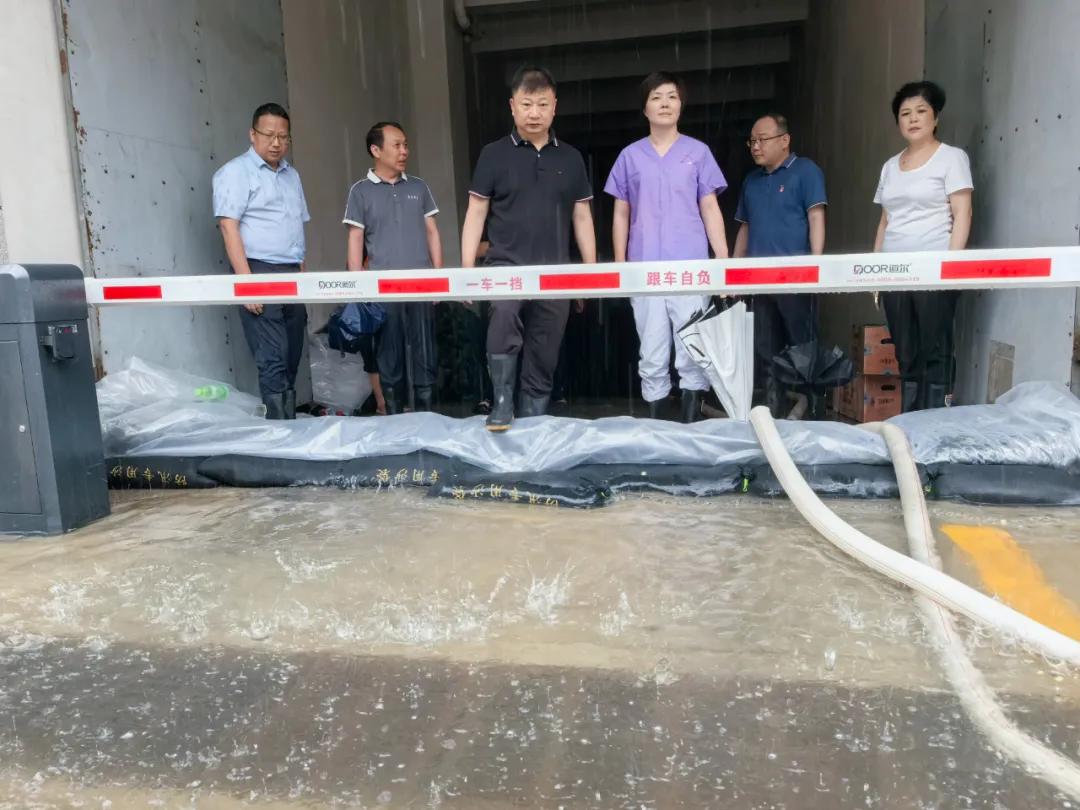 7 月16日,漯河普降暴雨,按照全市統(tǒng)一部署和衛(wèi)健委要求,市二院立即啟動防汛預案和應急響應機制,黨委書記魏松、院長王瑾靠前指揮,帶領(lǐng)班子成員和相關(guān)職能科室人員迅速行動,主動關(guān)閉地下車庫布置防水擋板和沙袋,同時加固配電房防水沙袋墻,重點點位人員全部上崗包點駐守,確保能夠第一時間發(fā)現(xiàn)問題及時響應堵漏補缺,全力保障醫(yī)院安全穩(wěn)定運行。