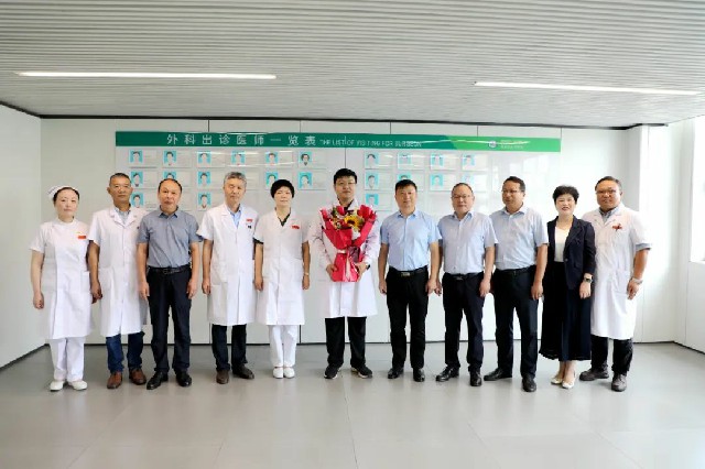 黨委書記魏松、院長(zhǎng)王瑾及其他領(lǐng)導(dǎo)班子成員還特別前去看望了醫(yī)師節(jié)前來坐診的鄭大一附院乳腺外科王新星教授和因病住院的市二院普外科主任何德山,向他們送去了節(jié)日的祝福。