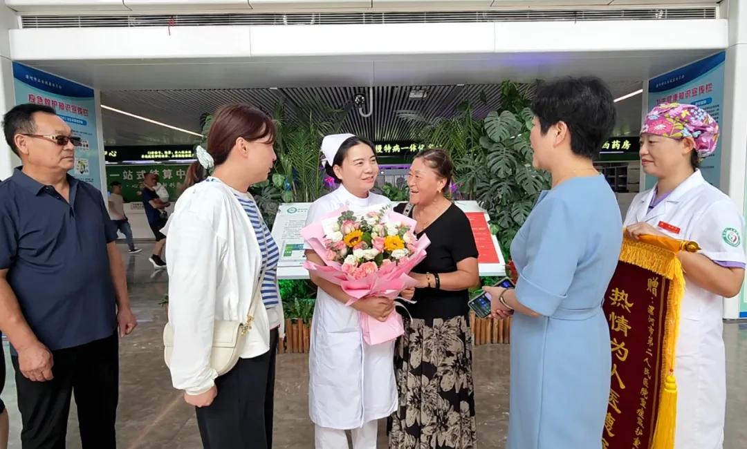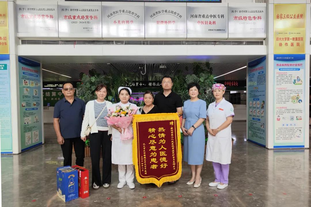 8月23日,來自鞏義的患者家屬一行四人攜鮮花、錦旗、禮品,驅(qū)車200公里到市二院,找到該院副院長(zhǎng)劉橋和重癥醫(yī)學(xué)科護(hù)士長(zhǎng)蔡新華直接表達(dá)來意:我們要給貴院重癥醫(yī)學(xué)科護(hù)士王美娜“送禮”,并希望院領(lǐng)導(dǎo)一定要好好表?yè)P(yáng)她:“要是沒有她,我們都不敢想會(huì)有啥后果!”