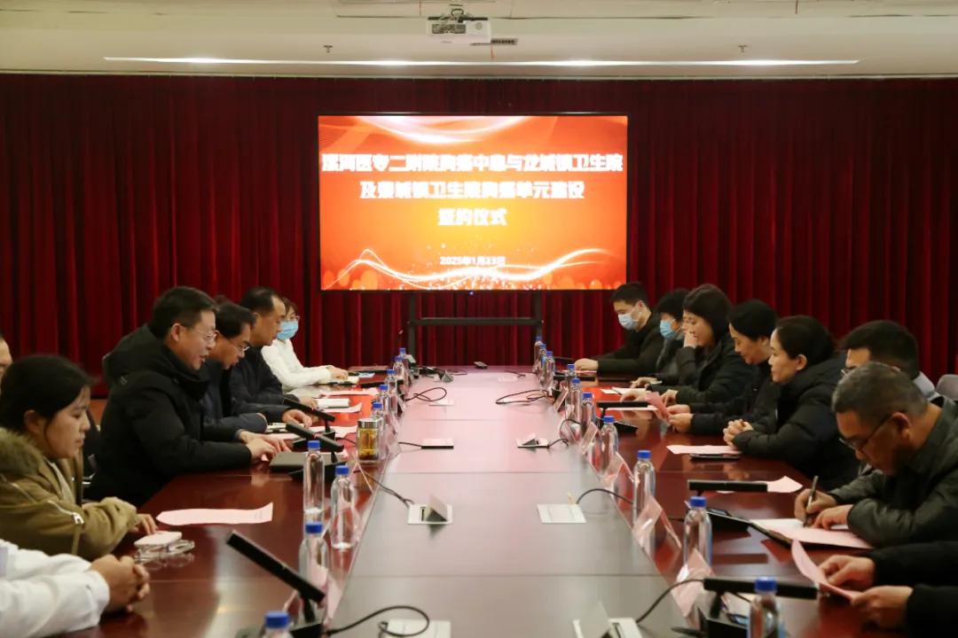 隨后,在與會(huì)人員的共同見(jiàn)證下,漯河醫(yī)專二附院院長(zhǎng)王齊超分別與龍城鎮(zhèn)衛(wèi)生院院長(zhǎng)葛雙云、裴城鎮(zhèn)衛(wèi)生院院長(zhǎng)王群峰正式簽署了合作協(xié)議。