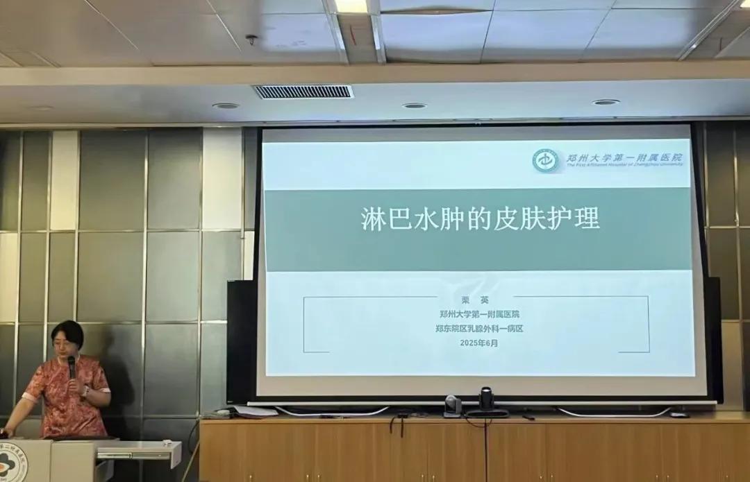 鄭大一附院乳腺外科栗英護(hù)士長(zhǎng)現(xiàn)場(chǎng)演示《淋巴水腫皮膚護(hù)理黃金法則》“患肢防曬防蚊蟲、壓力袖套穿戴3要點(diǎn)、傷口應(yīng)急處理口訣”,患者認(rèn)真學(xué)習(xí)記錄實(shí)用居家護(hù)理方法。