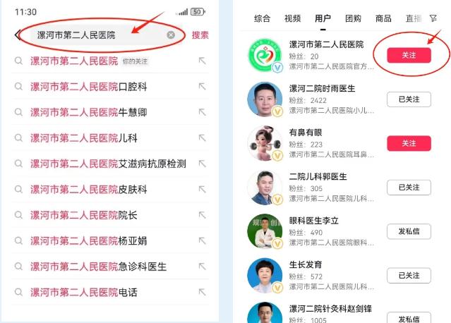 用戶名“漯河市第二人民醫(yī)院”或者抖音賬號(hào)71780395553