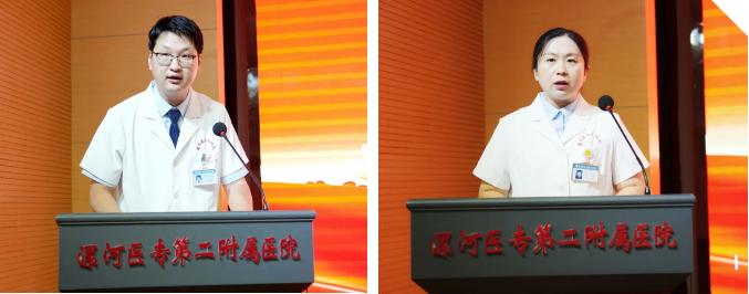 會上,創(chuàng)傷骨科二病區(qū)科吳大龍和急診醫(yī)學(xué)科王旭光兩位優(yōu)秀青年醫(yī)師代表分享了各自在臨床工作中的突出事跡和經(jīng)驗。他們用真實的事例,生動地講解了工作中的點滴,分享了自己的從醫(yī)經(jīng)歷和感悟,表達了愛崗敬業(yè)、德業(yè)兼修、無私奉獻的個人信念,表示將始終用自己的實踐和付出來詮釋“健康所系、生命相托”的責(zé)任和信賴。優(yōu)秀醫(yī)師代表們真誠的講述令在場醫(yī)務(wù)人員深受感動,大家紛紛表示,將繼續(xù)努力,不斷提高醫(yī)療技能和服務(wù)水平,為人民群眾的健康事業(yè)繼續(xù)貢獻自己的力量。