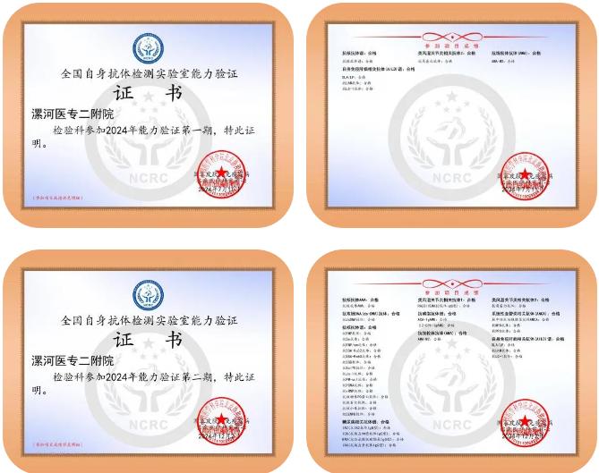 近日,漯河醫(yī)專二附院(漯河市骨科醫(yī)院、漯河市立醫(yī)院)檢驗(yàn)科自身免疫實(shí)驗(yàn)室在“國家皮膚與免疫疾病臨床醫(yī)學(xué)研究中心(NCRC)”組織的、北京協(xié)和醫(yī)院牽頭的全國自身抗體檢測實(shí)驗(yàn)室能力驗(yàn)證中,再次憑借卓越的檢測能力和穩(wěn)定的技術(shù)水平,斬獲合格證書。這已經(jīng)是自2023年以來,連續(xù)3年獲此殊榮,充分說明了醫(yī)院自身免疫實(shí)驗(yàn)室的檢測結(jié)果與全國251家實(shí)驗(yàn)室數(shù)據(jù)高度一致,達(dá)到國家級(jí)標(biāo)準(zhǔn)化水平,為臨床診斷提供了堅(jiān)實(shí)可靠的依據(jù)。