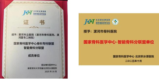 10月18日,國家骨科醫(yī)學(xué)中心骨科??坡?lián)盟智能骨科分聯(lián)盟授牌儀式在北京積水潭醫(yī)院舉辦,漯河醫(yī)專二附院(漯河市骨科醫(yī)院、漯河市立醫(yī)院)憑借在骨科領(lǐng)域的卓越實(shí)力和創(chuàng)新探索,成為智能骨科分聯(lián)盟成員單位。