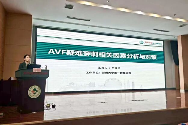 中華護(hù)理學(xué)會(huì)血液凈化專業(yè)委員會(huì)委員、鄭州大學(xué)第一附屬醫(yī)院血液凈化中心護(hù)士長(zhǎng)岳曉紅以《AVF疑難穿刺相關(guān)因素分析與對(duì)策》為題,從精準(zhǔn)評(píng)估、穿刺、超聲輔助、團(tuán)隊(duì)協(xié)作幾個(gè)方面,分析了動(dòng)靜脈內(nèi)瘺穿刺困難的各類因素,分享了一系列實(shí)用、有效的解決方案。由漯河市第二人民醫(yī)院血液凈化室護(hù)士長(zhǎng)朱潔與舞陽(yáng)縣人民醫(yī)院血液凈化室護(hù)士長(zhǎng)苗保紅主持會(huì)議。