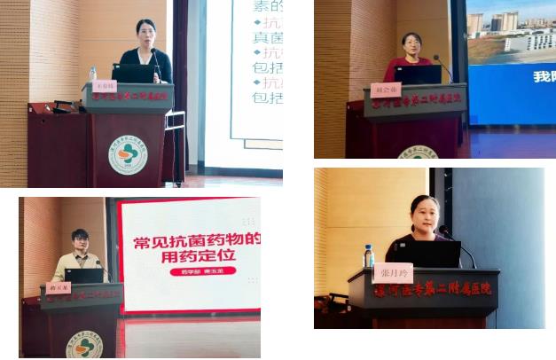 培訓環(huán)節(jié),急診重癥監(jiān)護室主任王春枝、藥學部抗感染臨床藥師劉會茹、藥學部抗感染臨床藥師蔣玉龍、檢驗科副主任張月玲,分別圍繞《是治療,還是打擾?-重新審視我們的抗菌藥物處方》《我院抗菌藥物應(yīng)用存在問題及分析》《常見抗菌藥物的用藥定位》《微生物標本規(guī)范采集》進行內(nèi)容分享。