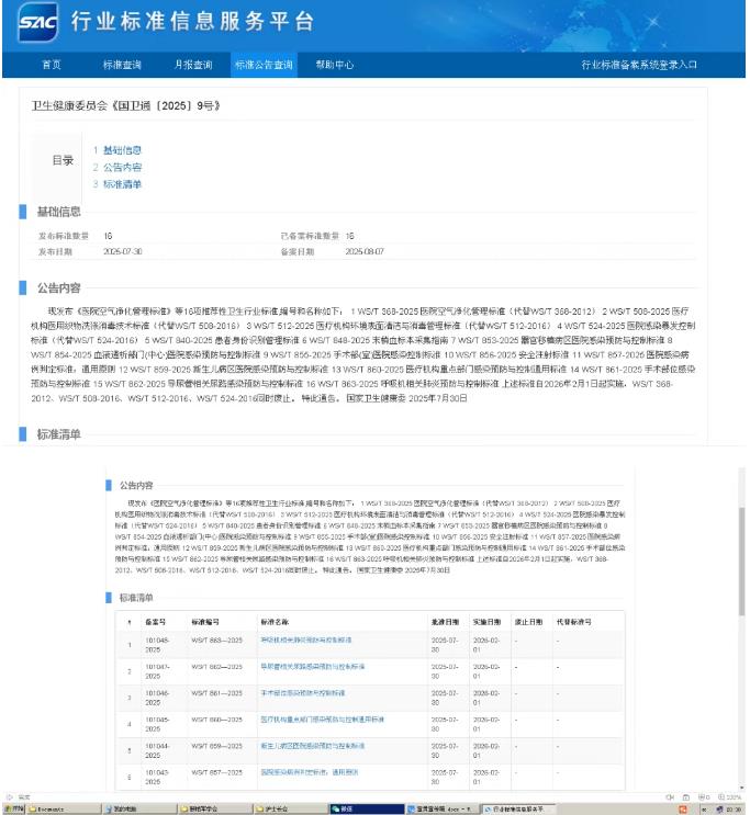 國家衛(wèi)生健康委員會近日正式發(fā)布《國衛(wèi)通〔2025〕9號》公告,公布并備案了16項推薦性衛(wèi)生行業(yè)標準,其中14項重點圍繞醫(yī)院感染控制領域。該批標準將于2026年2月1日起全面實施,同時,4項修訂前的舊版標準同步廢止。新標準的發(fā)布實施,對進一步規(guī)范醫(yī)院感染管理流程、提升醫(yī)療質量安全水平具有重要意義。