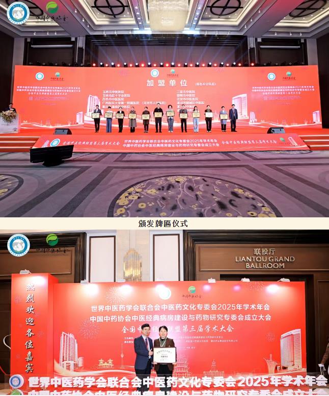 2025 年11月20-23日,世界中醫(yī)藥學會聯(lián)合會中醫(yī)藥文化專委會2025年學術(shù)年會、中國中藥協(xié)會中醫(yī)經(jīng)典病房建設與藥物研究專會成立大會暨全國中醫(yī)經(jīng)典聯(lián)盟第三屆學術(shù)大會在武漢隆重舉辦。