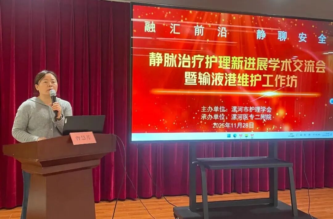 為進(jìn)一步提升靜脈治療護(hù)理質(zhì)量,規(guī)范臨床操作流程,保障患者安全,11月28日,漯河醫(yī)專二附院(漯河市骨科醫(yī)院、漯河市立醫(yī)院)靜療學(xué)組舉辦“靜脈治療護(hù)理新進(jìn)展學(xué)術(shù)交流會暨輸液港維護(hù)工作坊”。會議由護(hù)理部副主任曹慧芳主持。
