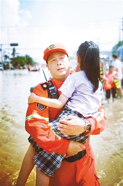 2021年,信天游在新鄉(xiāng)抗洪救災,救助受困孩子。受訪者供圖