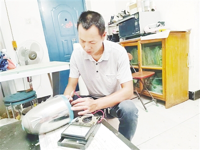 7月24日上午,記者在香堤左岸小區(qū)見到程凱亞時,他正在家修一個電水壺(如圖)。“這是參加社區(qū)志愿服務(wù)活動時,一位阿姨讓我?guī)兔π薜?。當時沒有修好,我就拿回來了,等修好了再給她送過去。”程凱亞告訴記者。
