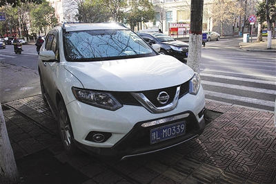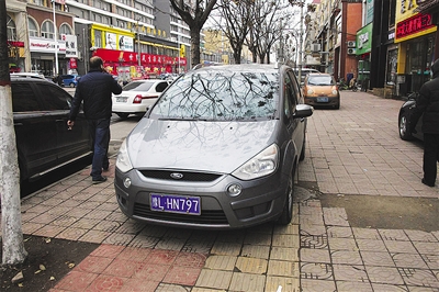 12月23日遼河路上占壓盲道。