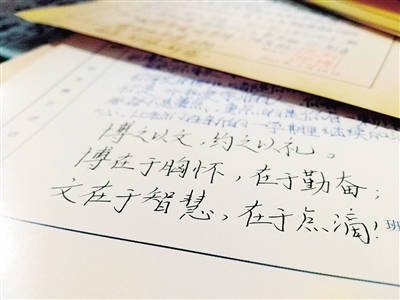 為了完成這項(xiàng)工作,他是既翻字典,又查資料,力求把每個(gè)學(xué)生的名字“解”到位,學(xué)校表現(xiàn)“點(diǎn)”到位。全班75名學(xué)生,寫完這些評(píng)語,劉博也是耗費(fèi)不少精力。