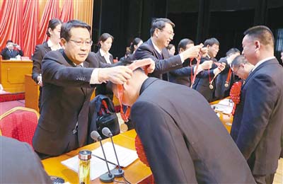 12月22日,市領(lǐng)導(dǎo)蒿慧杰、劉尚進(jìn)等為受表彰的先進(jìn)個人、先進(jìn)集體和優(yōu)秀共產(chǎn)黨員、先進(jìn)基層黨組織代表頒獎。記者 王慶建 攝