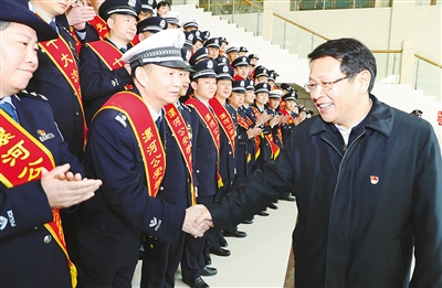 蒿慧杰指出,設(shè)立“中國(guó)人民警察節(jié)”,充分體現(xiàn)了習(xí)近平總書記和黨中央、國(guó)務(wù)院對(duì)人民警察隊(duì)伍的關(guān)心關(guān)懷。舉行慶祝首屆中國(guó)人民警察節(jié)暨2020漯河公安職業(yè)榮譽(yù)儀式,是貫徹落實(shí)黨中央、國(guó)務(wù)院決策部署的實(shí)際行動(dòng),也是市委、市政府對(duì)全市人民警察隊(duì)伍的充分肯定和高度褒獎(jiǎng)。 近年來,全市公安機(jī)關(guān)在市委、市政府的堅(jiān)強(qiáng)領(lǐng)導(dǎo)下,堅(jiān)持以習(xí)近平新時(shí)代中國(guó)特色社會(huì)主義思想為指導(dǎo),圍繞中心、服務(wù)大局,忠實(shí)履行維穩(wěn)第一責(zé)任,主動(dòng)服務(wù)發(fā)展第一要?jiǎng)?wù),始終走在防風(fēng)險(xiǎn)、保安全、護(hù)穩(wěn)定、促發(fā)展的最前沿,在安保維穩(wěn)、掃黑除惡、疫情防控、脫貧攻堅(jiān)、環(huán)保攻堅(jiān)、創(chuàng)文攻堅(jiān)等重大工作中,展現(xiàn)了公安風(fēng)采、貢獻(xiàn)了公安力量,也涌現(xiàn)出一大批先進(jìn)集體和先進(jìn)個(gè)人,充分體現(xiàn)了警察隊(duì)伍的政治品格、公仆情懷、擔(dān)當(dāng)精神。我代表市委、市政府向受表彰的先進(jìn)模范表示熱烈的祝賀,向全市廣大公安民警及其家屬致以節(jié)日的問候和崇高的敬意。當(dāng)前,我市已進(jìn)入全面推進(jìn)社會(huì)主義現(xiàn)代化建設(shè)的新階段,希望全市公安機(jī)關(guān)和廣大公安民警以“中國(guó)人民警察節(jié)”的設(shè)立為新起點(diǎn),深入學(xué)習(xí)貫徹習(xí)近平總書記關(guān)于做好公安工作的重要講話、訓(xùn)詞和指示批示精神,牢記“對(duì)黨忠誠(chéng)、服務(wù)人民、執(zhí)法公正、紀(jì)律嚴(yán)明”的新時(shí)代公安工作總要求,大力弘揚(yáng)英模精神、繼承優(yōu)良傳統(tǒng),以高度的政治責(zé)任感、良好的精神狀態(tài)、扎實(shí)的工作作風(fēng),全力以赴做好維護(hù)國(guó)家安全和社會(huì)穩(wěn)定各項(xiàng)工作,為落實(shí)新時(shí)代漯河經(jīng)濟(jì)社會(huì)發(fā)展“五個(gè)一”總體思路營(yíng)造良好的社會(huì)環(huán)境,以優(yōu)異成績(jī)迎接中國(guó)共產(chǎn)黨成立100周年。各級(jí)黨委、政府要進(jìn)一步關(guān)心和支持公安工作,加大綜合保障力度,落實(shí)從優(yōu)待警舉措,讓廣大公安民警工作安心、生活舒心。
