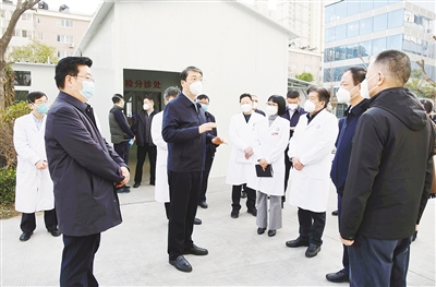 12月13日下午,市委書記劉尚進(jìn)等在市中心醫(yī)院察看發(fā)熱門診運行管理情況。